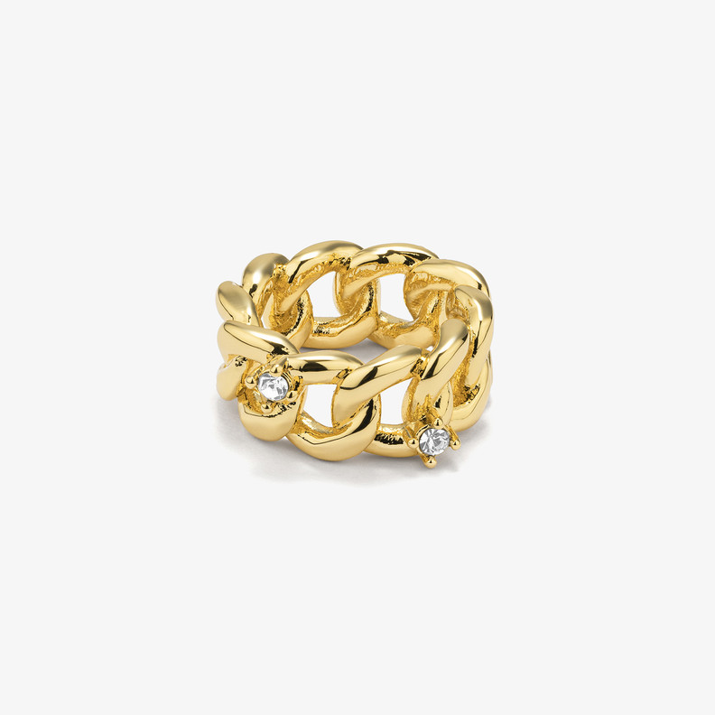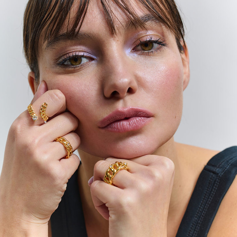 O Anel Gaga Diva dourado para mulher da coleção Spring Summer 25 da Radiant é uma peça marcante que combina design arrojado com estilo sofisticado. Fabricado em aço inoxidável com um acabamento dourado brilhante, este anel destaca-se pela sua estrutura de elos grossos entrelaçados, evocando uma estética moderna e poderosa. Para adicionar um toque de requinte, a peça inclui pequenos detalhes de zircónias cravadas que refletem a luz e realçam o seu caráter exclusivo. O seu design robusto mas confortável garante um ajuste perfeito, tornando-o um acessório ideal tanto para o dia-a-dia como para eventos especiais em que queiras destacar-te. Por que deves escolher o Anel Gaga Diva dourado para mulher da Radiant: design arrojado com elos grossos entrelaçados que criam um efeito moderno e sofisticado, materiais premium como o aço inoxidável com acabamento dourado resistente e duradouro, detalhes brilhantes com zircónias cravadas que acrescentam luminosidade e exclusividade, versatilidade para complementar tanto visuais urbanos como elegantes, e conforto assegurado com um design ergonómico que garante um ajuste confortável e seguro. Descobre como o Anel Gaga Diva dourado para mulher pode transformar o teu estilo com a sua estética única e essência sofisticada.
