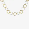 O Colar de Mulher Knots Loop Dourado combina elegância contemporânea e design simples numa peça pensada para elevar qualquer estilismo. Produzido em aço inoxidável de alta qualidade, apresenta um acabamento dourado polido que acrescenta luminosidade e um toque sofisticado ao conjunto. O seu design caracteriza-se por uma corrente formada por aros interligados de contornos suaves, criando uma estrutura contínua e equilibrada que confere fluidez e movimento ao pescoço. Integrado na coleção Chains & Knots, este colar reflete uma estética moderna e intemporal, ideal para mulheres que procuram joias versáteis com personalidade. O seu design permite usá-lo tanto em looks casuais de dia como em estilismos mais cuidados de noite. Pode ser usado sozinho como peça protagonista ou combinado com outros colares para criar composições em camadas. Resistente e confortável, é um acessório pensado para o uso diário sem abdicar do estilo.