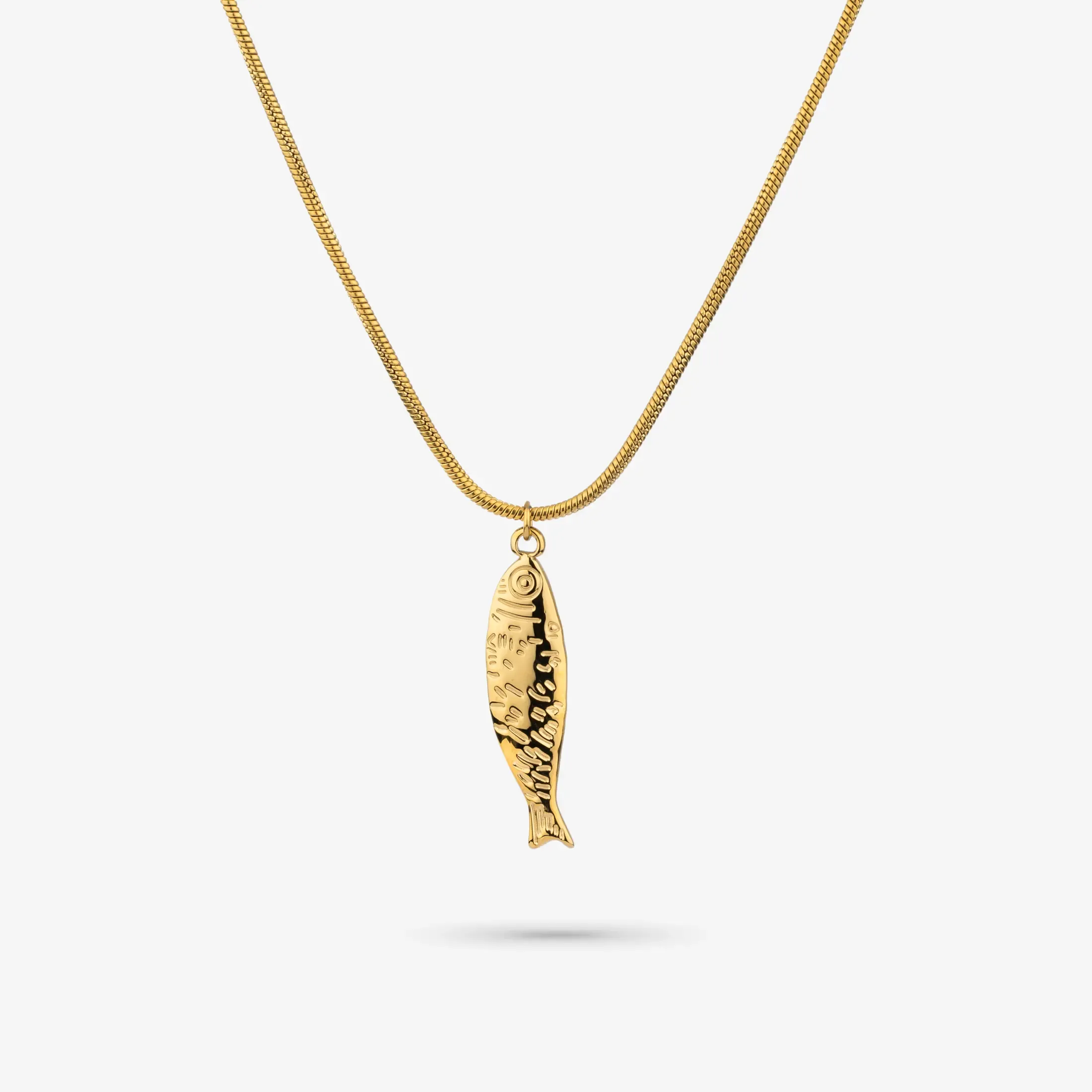 O Colar de Mulher Sea Dourado é uma peça delicada e simbólica que incorpora a inspiração marinha através de um pendente em forma de peixe estilizado. Produzido em aço inoxidável de alta qualidade, apresenta um acabamento dourado polido que acrescenta brilho e calor ao conjunto. O peixe, de linhas suaves e proporções equilibradas, integra-se de forma elegante numa corrente fina, conferindo leveza e um acabamento feminino ao decote. Parte da coleção Chains & The Sea, este colar reinterpreta o universo marinho numa estética contemporânea e sofisticada. O seu design intemporal permite usá-lo tanto no dia-a-dia como em ocasiões mais especiais. Pode ser usado sozinho como peça protagonista ou combinado com outros colares para criar um look em camadas mais pessoal. Resistente, confortável e versátil, é um acessório ideal para mulheres que procuram joias com significado e um design subtil.