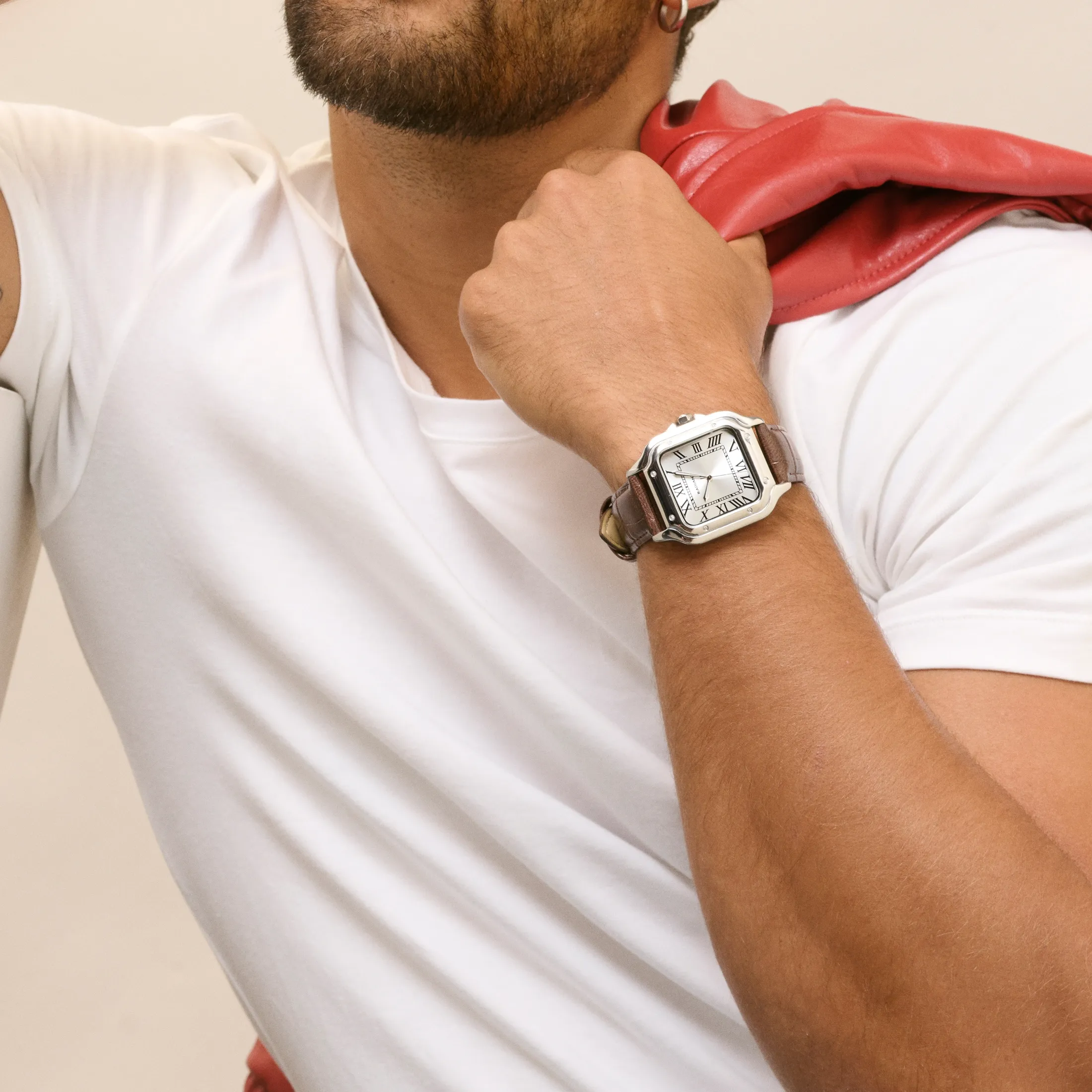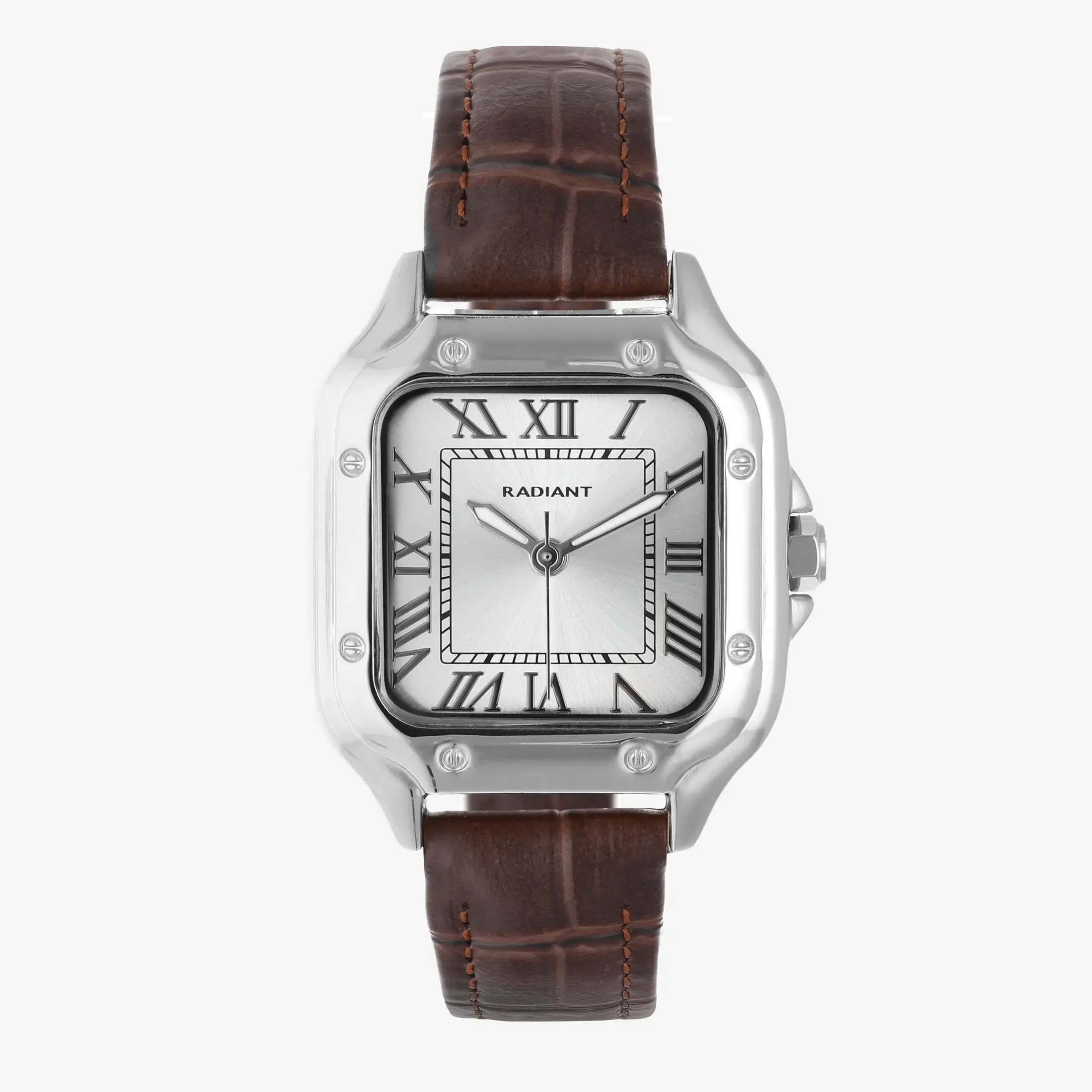 O relógio Chris Him em castanho é uma interpretação calorosa e sofisticada do clássico relógio para homem. A sua caixa metálica prat eada, de 37,5 x 47,5 mm, apresenta linhas suaves e proporções pensadas para se destacar no pulso de forma natural. O mostrador branco, com numeração romanos e marcadores escuros, mantém uma estética sóbria e legível. A bracelete castanha texturizada com acabamento em padrão crocodilo, feita em couro vegan, confere personalidade, qualidade ao toque e um compromisso com materiais éticos. Este relógio castanho masculino, equipado com movimento de quartzo 2035, é fiável, duradouro e confortável para o uso diário. Ideal para looks business casual, combinações com tons neutros ou até looks mais formais, Chris Him é uma aposta segura. Representa a essência de um relógio elegante para homem, com aspeto tradicional e uma execução moderna, perfeito para quem procura estilo, conforto e responsabilidade.